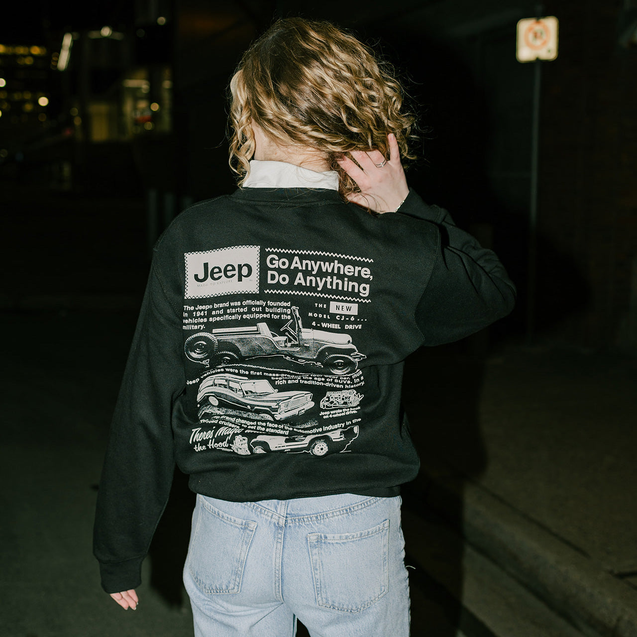Pay tribute to the iconic Jeep with this limited edition crewneck, featuring a tonal graphic down the back that traces the history behind its creation. A perfect mix of heritage and style, it’s designed for those who appreciate the story behind the ride.