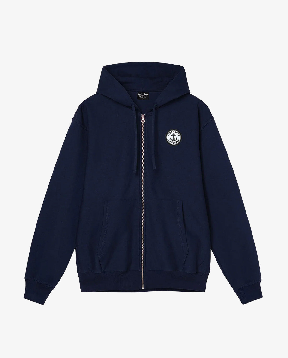 Introducing our comfy zip-up hoodie, featuring our signature anchor logo patch over the heart. Perfect for adding a touch of East Coast pride to your look.