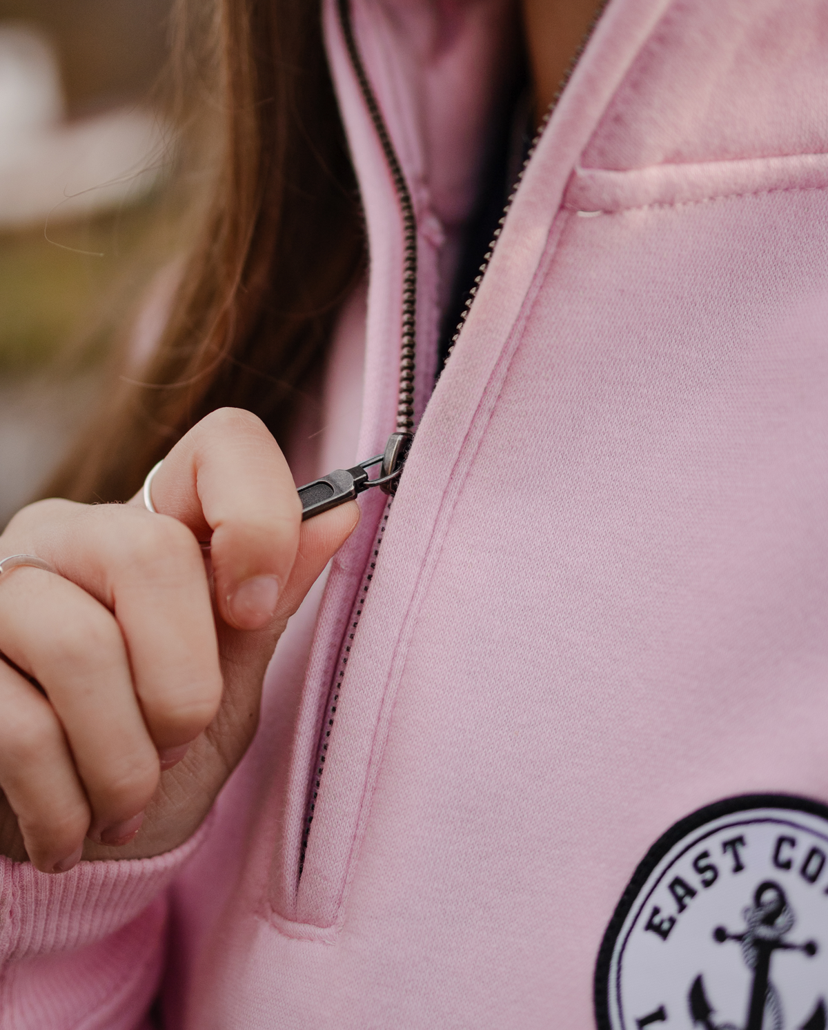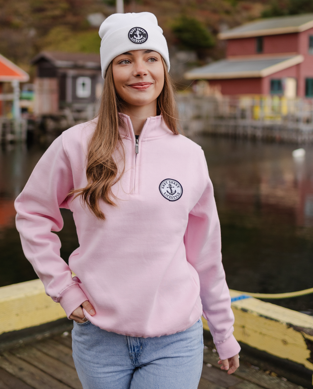 Introducing our comfy quarter zip sweater, featuring our signature anchor logo patch over the heart. Perfect for adding a touch of East Coast pride to your look.